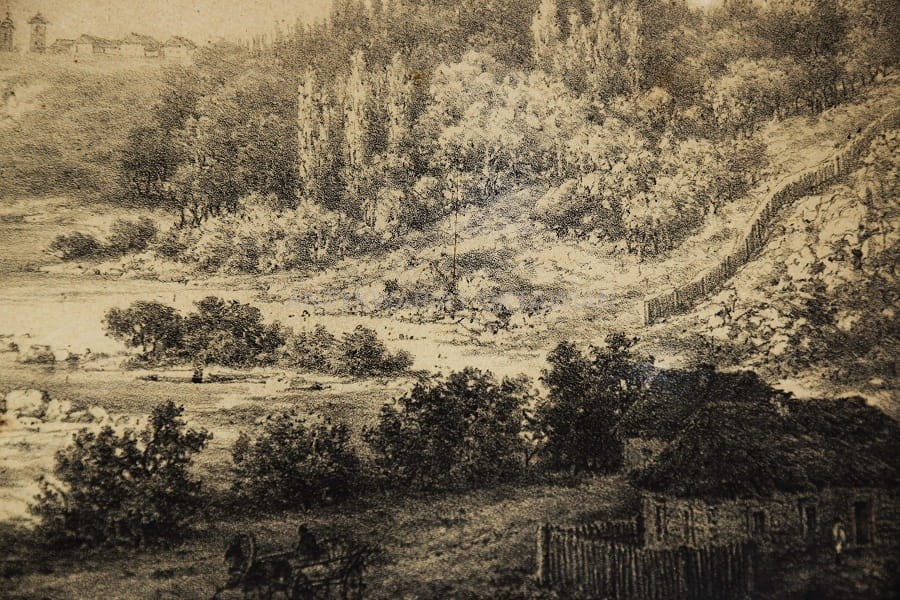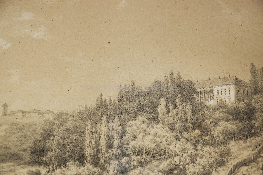 Poniżej widoku tytuł (także w języku francuskim) oraz sygnatury – rysował z natury Napoleon Orda (1807-1873).