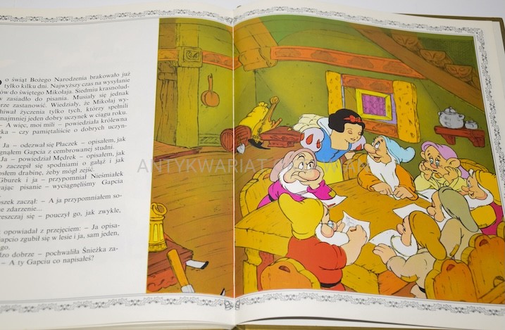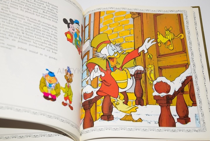- Bohaterowie: Myszka Miki, Kaczor Donald i inni w zimowej scenerii.